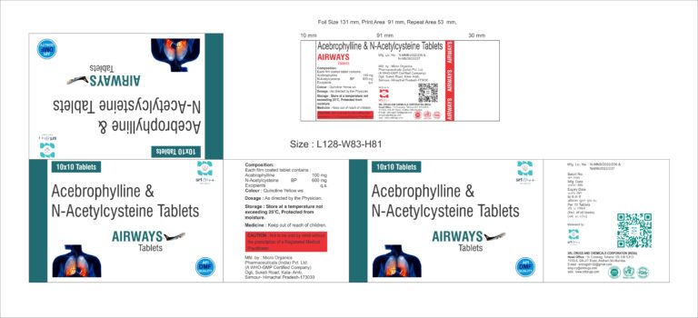A hallmark of Airways lies in its dual-action formula. Acebrophylline, as a bronchodilator and mucolytic, adeptly relaxes airway muscles and reduces mucus viscosity, easing breathing and enhancing respiratory comfort. Acetylcysteine complements this by effectively thinning mucus (phlegm), facilitating its expulsion and alleviating congestion. Together, they form a powerful combination that ensures optimal pulmonary function.
